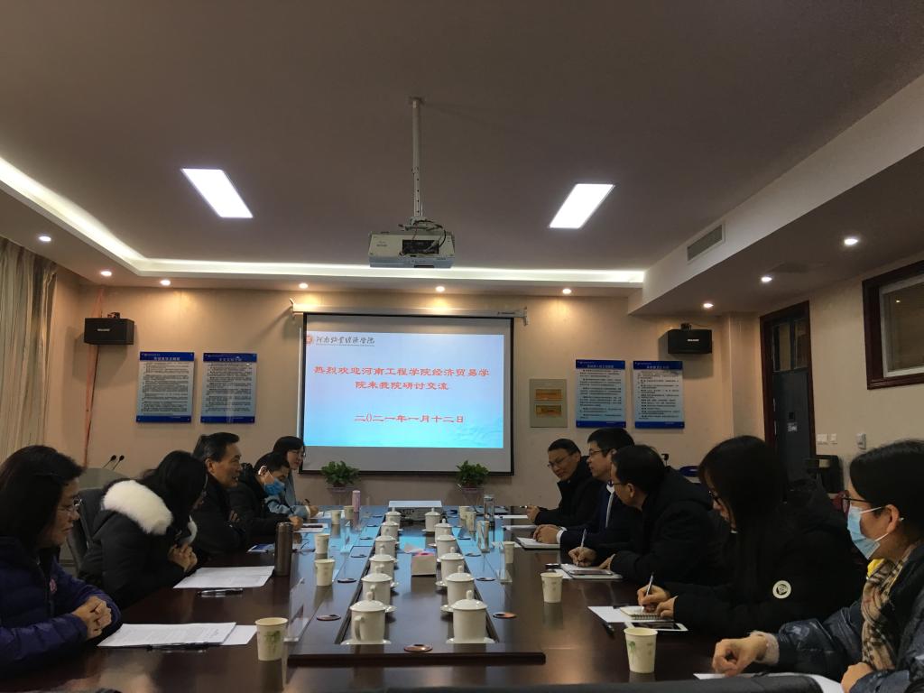 2021年1月12日,河南工程公司经济贸易公司郭宝林经理、党政办主任王继东等一行5人到公司就会展经济与管理专业建设、实践教学等方面进行考察交流。公司经理王德静、副经理王中雨、会展教研室主任连建功及部分教师代表参加了此次交流活动,活动由副经理王中雨主持。