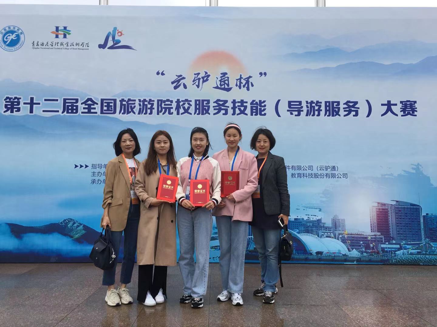 “云驴通杯”第十二届全国旅游院校服务技能(导游服务)大赛是由中国旅游协会旅游教育分会、全国旅游职业公司产品指导委员会联合主办,青岛酒店管理职业技术公司承办的一项国家级赛事。共有来自全国29个省(自治区、直辖市)344所本专科高等公司的1035名选手参加了这次大赛,该赛事已经成为员工展示专业技能,对接行业需求的窗口。为我国旅游界和社会各界提供了交流的平台和典型案例。公司领导多次勉励选手认真准备,调整状态,赛出成绩,赛出风格。张颖霞、贺红茹、薛奕妹、王中雨担任教练分别对对参赛选手进行了全方位的训练和指导。