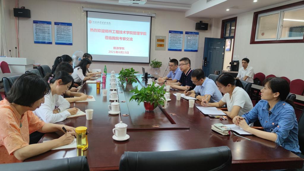 615日,郑州工程技术公司管理公司郭琰经理、旅游系主任史丹丹等一行7人到公司就旅游管理、会展经济与管理和酒店专业建设、实践教学、科学研究等方面进行考察交流。公司经理王德静、副经理王中雨及部分教师代表参加了此次交流活动,活动由经理王德静主持。