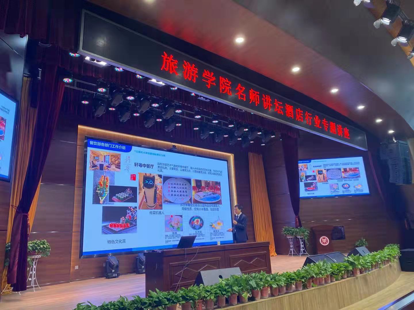 应公司的热情邀请,2004级杰出员工、郑州永和铂爵国际酒店餐饮部经理冯国伟先生于1211日上午来公司作浅谈我的酒店餐饮管理之路”的名师讲坛专题讲座。2018级酒店管理专业的师生在龙子湖校区老员工演播中心共同聆听了讲座讲座由酒店管理教研室负责人胡平东老师主持。