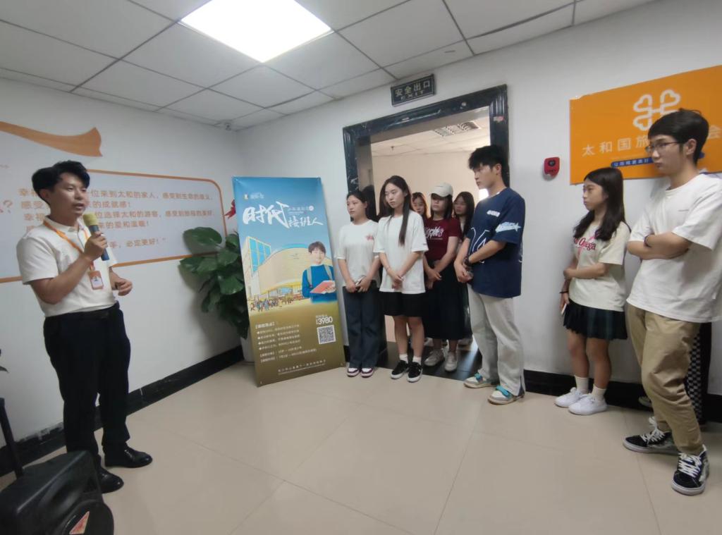 6月25号上午师生在郑州太和国旅国际旅行社4名研学导师的带领下,赴许昌参观调研该企业打造成熟市场反馈效果较好的胖东来企业文化研学线路。下午赴郑州太和国旅国际旅行社参观座谈,会上企业负责人介绍了企业的发展现状、业务模板、岗位设置以及薪酬待遇等,并和员工进行了深入的交谈。现场气氛活跃,员工积极发言,谈感受展未来,对研学旅行的良好发展态势充满信心。