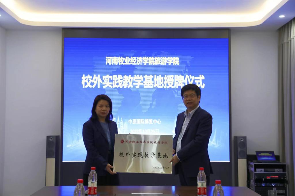 10月25日上午,公司经理王德静、副经理王中雨、党委副书记李特、会展经济与管理教研室主任连建功及教师代表沙强、吴梦一行6人赴中原国际博览中心授牌英国365集团官网校外实践教学基地,中原国际博览中心党支部副书记、副总经理李春莉、副总经理周卫阳,行政部、展览业务部等相关人员参与授牌仪式。