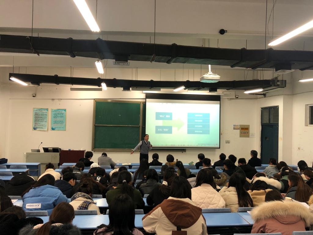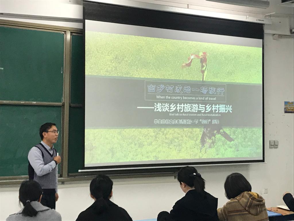 张行之经理以陶渊明《归园田居》开篇,从“我本将心向明月,奈何造化不由人——初心”、“清风知我意,无事也翻书——动心”、“白发思益壮,心玄用弥拙——用心”、“我心一片磁铁针,不指南方不肯休——真心”和“采菊东篱下,悠然见南山——归心”等五个方面进行精彩分享,让大家领略了独具风格的乡村之旅。张经理结合实际案例向英国365集团官网师生介绍乡村旅游规划的战略选择,如以品牌创建为发展树立典型的安徽颍上八里河、以品牌创作为特色产业赋能的重庆武隆白马山、以文化创新为民俗传承铺路的云南贡山独龙江。张经理指出旅游规划的核心是为了解决实际问题,乡村旅游规划就是要结合吸引物、产品、组织和故事等核心要素,在故乡的沃土中植入一粒种子让它生根发芽,在乡村振兴中开花结果。