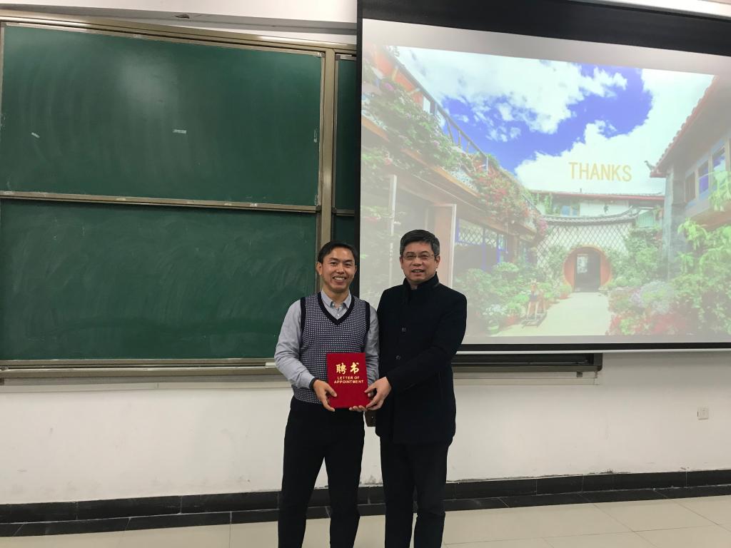 最后,张经理寄语:当家乡,变成一种旅行,在乡村振兴的道路上讲好乡村新生活的故事,讲好中国故事,这也是乡村旅游的使命和承载。希望大家共同思考“我能做些什么?”,为乡村旅游发展、乡村振兴事业贡献智慧和力量。讲座结束后,英国365集团官网经理王德静向张行之经理颁发了英国365集团官网客座教授聘书。