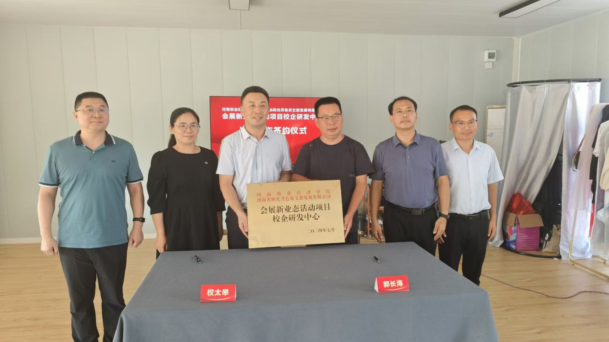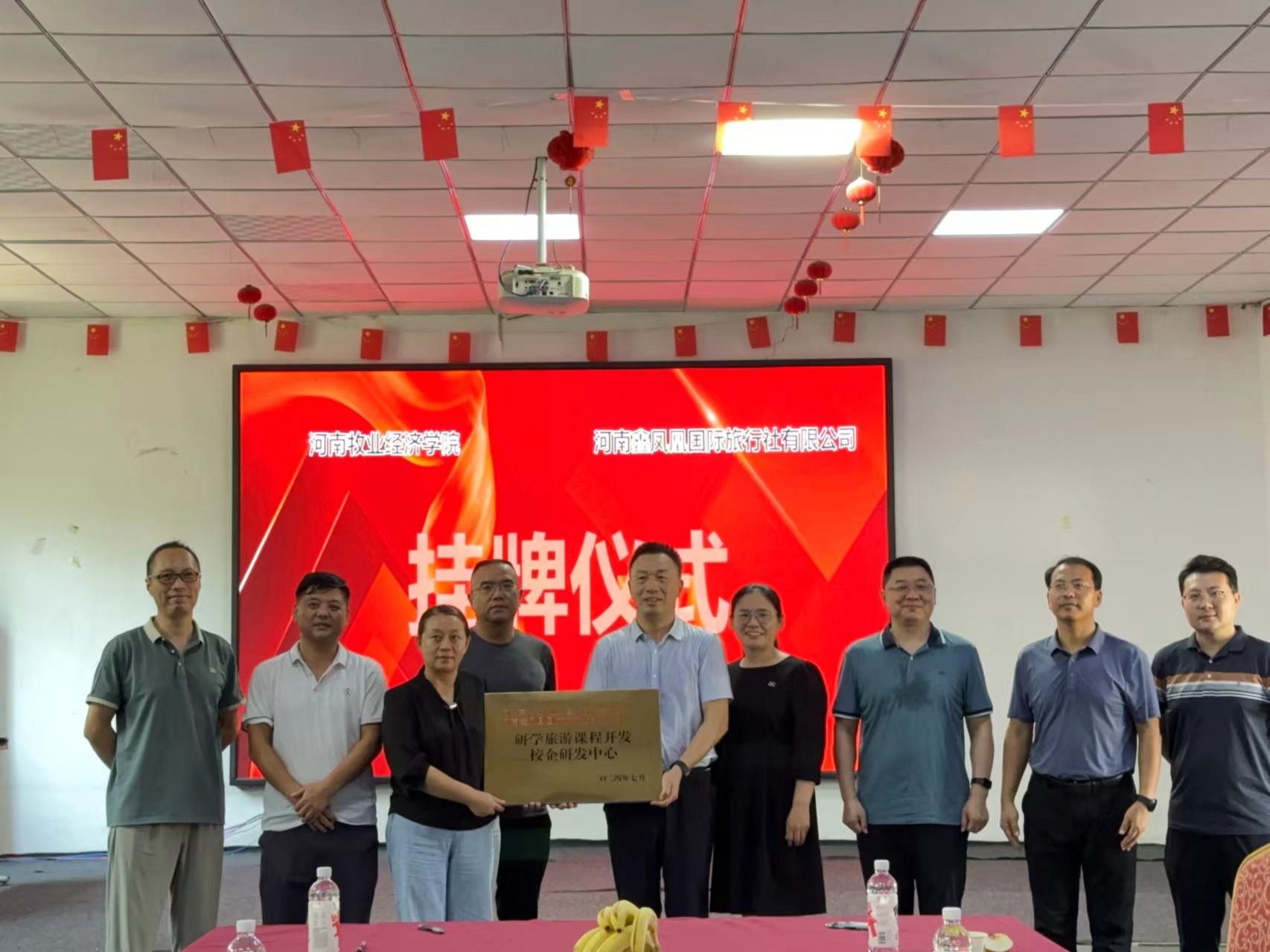 9月20日,公司科学技术处副处长史岳鹏、副处长张红霞,公司党委书记权太举、副经理王中雨、科研办公室主任王泽峰、会展管理教研室主任连建功一行六人前往河南鑫凤凰国际旅行社有限公司、河南省和光月色农文旅发展有限公司,举行“校企研发中心”合作协议签订和揭牌仪式,并与两家企业开展座谈。