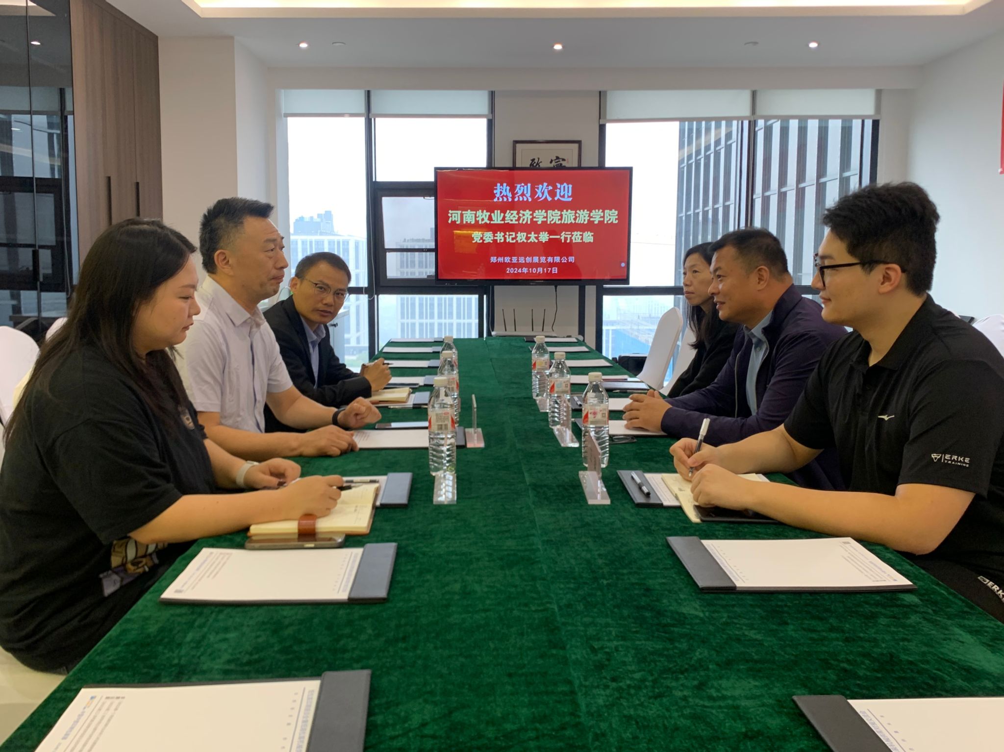 为深入贯彻落实教育部关于高校毕业生就业工作的决策部署,深化校企交流合作,拓宽毕业生就业渠道,按照公司深入推进访企拓岗促就业专项行动的要求,10月17日,公司党委书记权太举一行3人走进郑州欧亚远创展览有限公司、郑州龙子湖中原学术交流中心、河南和光月色农文旅有限公司考察交流、访企拓岗。