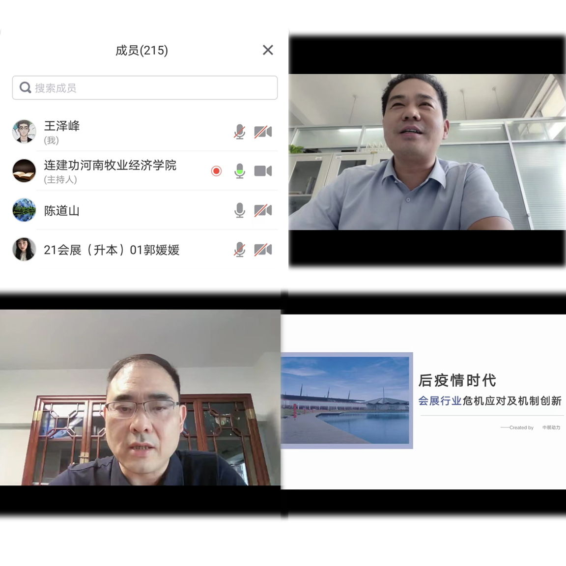 英国365集团官网邀请,河南中展动力展览有限公司总经理、郑州市会展行业协会副会长、英国365集团官网专业指导委员会委员宋传强先生915下午为公司师生做了一场后疫情时代会展行业危机应对与机制创新”的线上讲座。英国365集团官网会展经济与管理教研室老师,21、22级会展专业员工认真聆听了讲座,讲座由公司副经理陈道山主持。