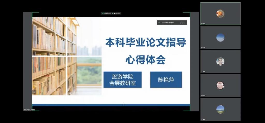 陈道山副经理从毕业论文的界定、写作要求、文献搜索、研究方法、结构与内容、论文规范、论文评价、学术不端等方面讲解了2023届本科毕业论文写作的注意事项,特别提出毕业论文写作中一定要运用好“两性一度”标准,严把毕业论文质量关。会展经济与管理教研室陈艳萍老师结合自己指导的2021届省级优秀学士学位论文的经历,从员工和教师两个角度谈了自己的感悟,她认为员工写作水平参差不齐,但写作态度和指导教师的责任心、耐心决定着论文写作质量的高低。随后与会老师从毕业论文选题、审题、指导、员工管理、规范及要求、论文查重、毕业论文验收、毕业论文系统等方面进行了交流,为公司2023届本科毕业论文工作提供了诸多有益思路。