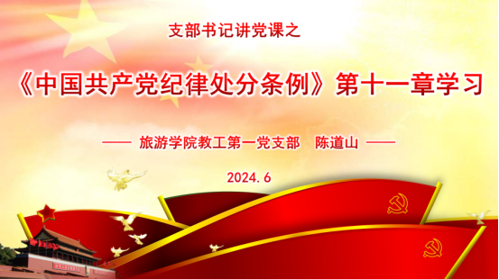 根据公司党纪学习教育工作专班《关于做好基层党组织书记讲纪律党课相关工作的通知》的精神,6月13日下午公司教工第一党支部在C423会议室开展《中国共产党纪律处分条例》专题党课学习,支部书记陈道山围绕《中国共产党纪律处分条例》的学习目标、学习方法等内容进行专题讲解,最后紧密结合《中国共产党纪律处分条例》之“第十一章 对违反生活纪律行为的处分”进行分析,为支部党员上了一堂生动深刻且理论联系实际的党课。