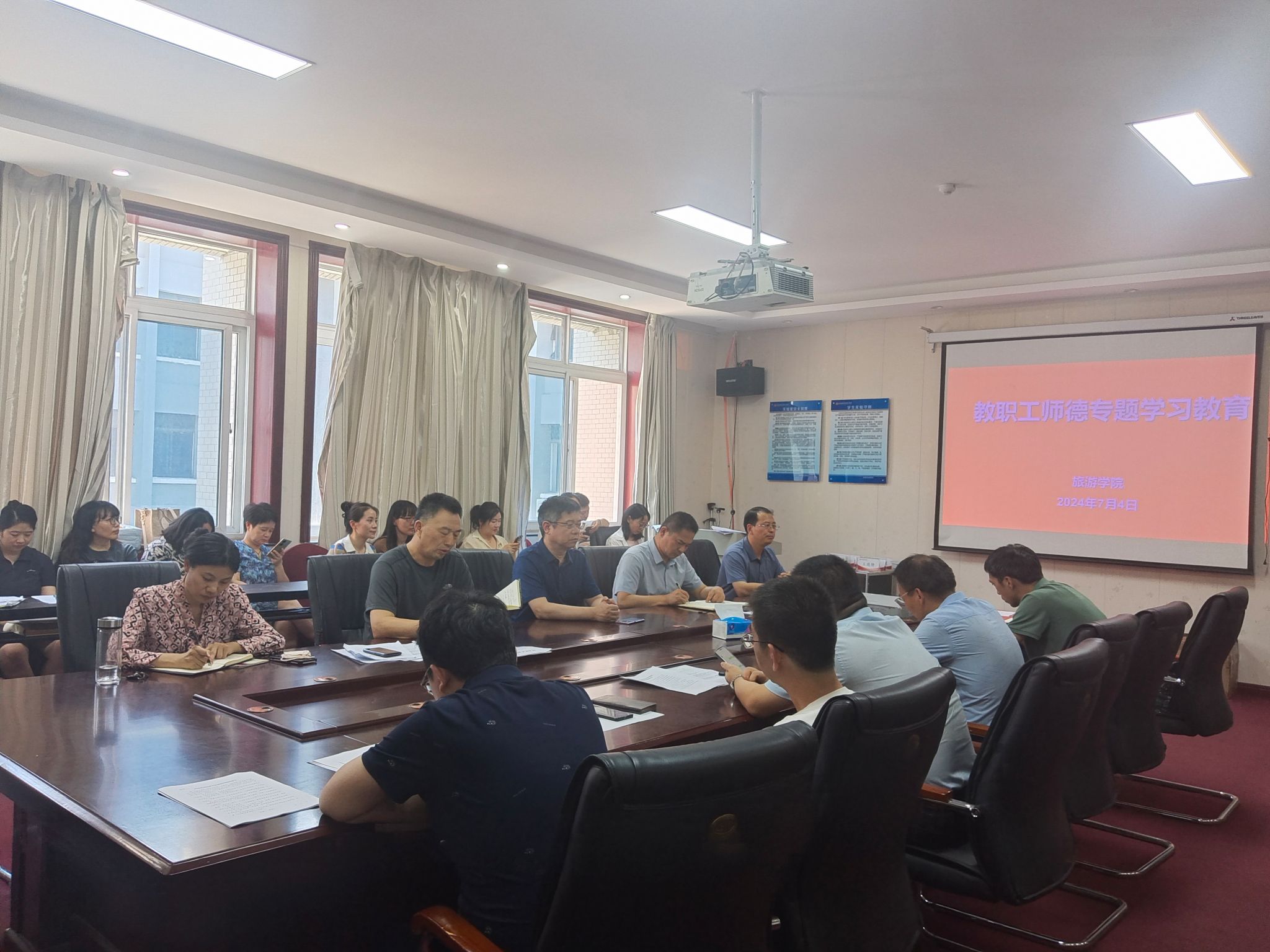 加强新时代师德师风建设,按照公司《关于深入开展师德失范问题专项整治工作的通知》要求,7月4日下午,旅游公司在二号楼C423会议室召开师德师风教育专题会议,公司全体教职工参会,会议由公司党委书记权太举主持。