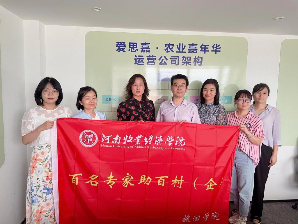 扎实推进“百名专家助百村(企)”工程(“双百”工程),助力地方乡村振兴发展,822日,旅游公司旅游基础与创新教研室主任肖鸿燚副教授带领教研室老师开封市祥符区爱思嘉农业嘉年华景区深入调研并指导工作,受到开封大宏爱思嘉农旅集团常务副总裁付娟等企业领导的热烈欢迎。