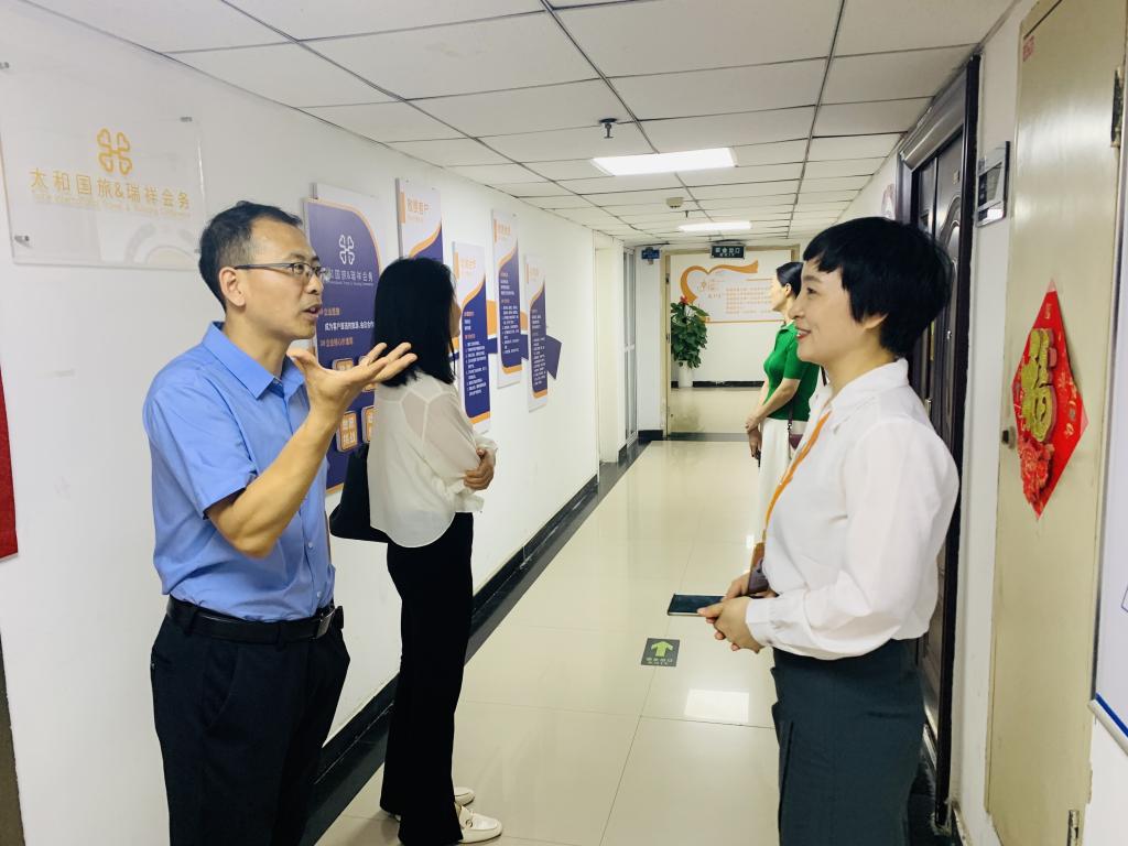 企业负责人首先对公司领导教师的带来表示热烈欢迎,并带领王经理一行参观了企业的文化墙、办公环境等,随后的座谈环节又详细介绍了企业的发展历程、主要业务板块、战略规划、用人需求等,赵晓对公司毕业生给予充分肯定,认为公司毕业生知识娴熟、能力突出,在企业成长很快,多名毕业生都已发展成为企业骨干,并表达了和公司会展经济与管理、旅游管理等专业深入合作的强烈意愿;王中雨副经理介绍了英国365集团官网的发展历程、办学特色、专业设置、实习实践等基本情况,指出公司和太和国旅校企合作具有深厚的历史渊源,多名毕业生在企业得到成长和提升,今后公司人才培养和太和国旅用人需求可以实现无缝对接,共育文旅会展人才。随后双方在员工实习、企业产品开发、课程建设、团队互聘、实践基地建设等方面进行了研讨。