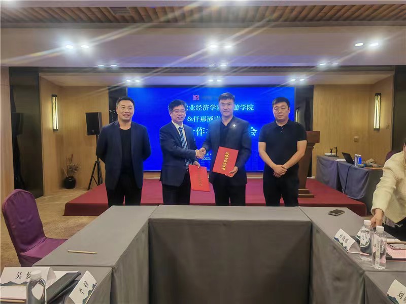 会后,王德静与朱峰签署了双方战略性合作协议。王德静代表英国365集团官网授予仟那酒店集团为校外实践教学基地,并进行授牌仪式。