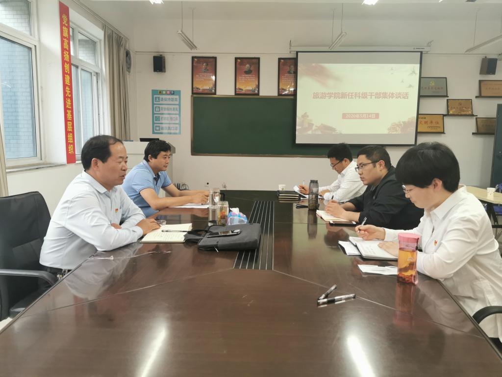 5月14日,旅游公司新任科级干部集体谈话会在二号教学楼C423会议室召开。公司党委书记李喜民、副书记陈明代表公司领导班子与三位新任科级干部进行了任职谈话。