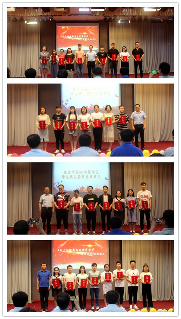 “起来,不愿做奴隶的人们……”,师生们肃然而立,齐唱国歌。饱满激昂的国歌声中,透着他们的坚毅与赤诚。望着这一张张稚嫩而自信的面孔,李喜民书记在致辞时也是十分激动,言语之间无不透露着对即将踏上新征程的993位毕业生无限的关怀与期望。李书记动情地谈到自己的感受:同学们在公司踏实学习,在实习岗位上勤奋工作,在社会里尽力奉献,如此骄人的成绩,“春风十里不如你”,李书记为同学们感到骄傲?三年苦读锻炼,同学们收获了累累知识,收获了珍贵的友谊,如今“真正向理想迈进,向幸福靠拢”,李书记为同学们感到由衷高兴。针对同学们将面临的诸多困难与挑战,李书记向大家提出两点希望,一是希望大家客观认识社会,学会适应社会,坚守梦想,坚守做人道德底线,在竞争压力下保持定力十足;二是希望同学们热情拥抱社会,告诉大家只要拥有饱满的理想和坚实的脚步,一定会收获一筐一筐的金苹果……作为师者、长者,李书记寄语同学们,不论未来身处何方,都要学会加强自身建设,慢些脚步,等等灵魂,从容的面对人生的波澜,谆谆教导与祝福在毕业生之间暖暖的传递着。带着这份祝愿与期望,杨盼盼同学代表全体2018届毕业生向三年来辛勤培育我们的老师们表达最真挚的敬意与感激之情,“一日之师,终身为父”,这里是永远的家,定当不辜负老师们的期望,情感真挚,发于肺腑。而后副经理马海燕宣读优秀毕业生、优秀员工干部、优秀先进个人获得者,经理徐新林教授,教研室主任张少飞、王中雨、陈道山、连建功等老师先后为其颁奖。