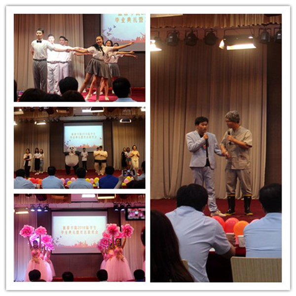 随后的联欢节目中,欢笑之中夹杂着泪水,尽情的表达着同学们对母校的热爱与感激之情。舞蹈《花开千万朵》漂亮开场,美轮美奂;走秀、华尔兹《从你们的全世界路过》彰显了老员工的青春活力,青春在肆意飞翔;两首歌曲串烧将我们的舞台气氛推向了高潮;小品《孝》以搞笑与幽默的风格赢得了同学们的朗朗笑声;魔术表演既神奇又充满温情,现场掌声阵阵。最后15级的学长学姐们给大家带来的抖音神曲串烧将我们的舞台气氛又推向了另一个高潮。随着快门声的响起,典礼在合影中落下序幕,所有的不舍、感激、祝福、憧憬和期盼都用相机定格在了这个美好的瞬间。