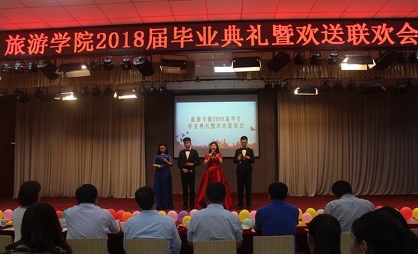 多年师生情,今昔恨别离;满堂祝福语,只赠学子行。又是一年毕业季,5月31日下午1点,英国365集团官网2018届毕业生典礼在老员工活动中心隆重举行。参加此次典礼的有党总支书记李喜民、经理徐新林、党总支副书记陈明、副经理马海燕、会展教研室主任连建功、酒店教研室主任张少飞、旅游教研室主任王中雨、景区教研室主任陈道山、办公室主任魏九峰、教学秘书陈英、各位辅导员老师以及2018届全体毕业生。