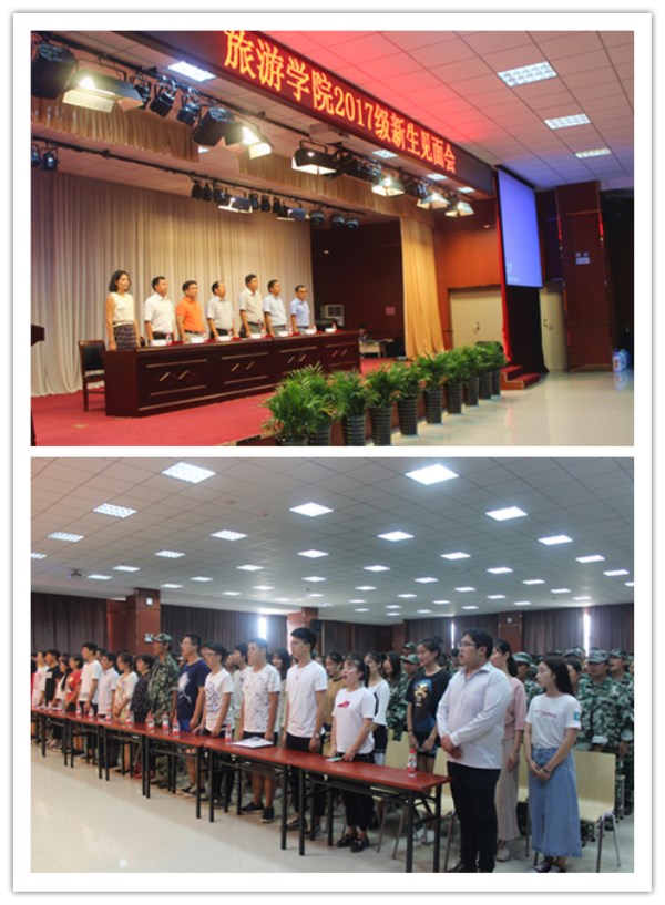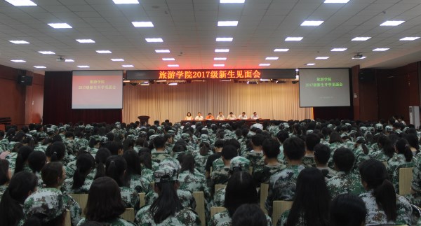 2017年9月22日,英国365集团官网在老员工活动中心四楼举行2017级新生入学典礼,出席此次大会的有公司党总支书记李喜民、党总支副书记陈明、副主任赵忠奇、会展专业教研室主任连建功、酒店专业教研室主任张少飞、景区专业教研室主任陈道山、团总支书记祝聪楠和各位辅导员以及部分2016级优秀员工代表、2017级全体新生。