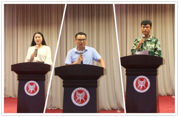 典礼在庄严的国歌声中正式拉开序幕。首先,由赵忠奇主任宣读新生入学安排以及周末入学教育事宜。随后对16级部分员工,包括导游大赛、职业经理人大赛、会展策划大赛等获奖同学进行表彰。颁奖典礼之后,16级酒店管理四班胡艳红同学作为老生代表上台发言,她首先对17级学弟学妹们表示欢迎,并就如何度过精彩的老员工活分享了自己的宝贵经验。随后,来自17级酒店管理六班的李佩阳同学作为新生代表发言,作为一名新生同时也是一名退伍军人,他向大家讲述了自己的求学经历,积极向上并且振奋人心,赢得了阵阵掌声。会展专业教研室主任连建功老师作为教工代表,为新生解疑答惑,勉励大家在以后的学习道路上脚踏实地,扎实学好专业知识。