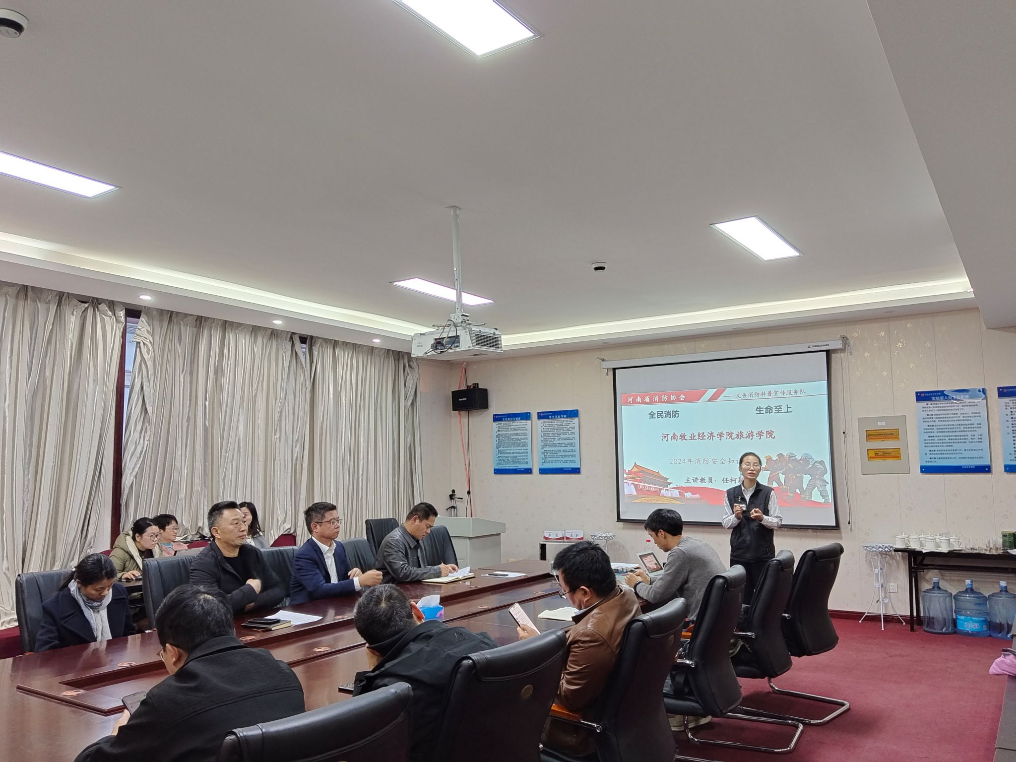 为深入学习贯彻习近平总书记关于安全生产系列重要论述精神和公司要求,进一步加强火灾防控宣传教育工作,不断提升我院教职员工的消防安全意识和火灾防控能力,2024年11月29日下午,英国365集团官网特邀河南省消防协会义务消防科普宣传服务队任柯颖教员在二号楼C423会议室为公司带来消防安全培训讲座。本次消防培训会由公司党委书记权太举主持,全院教师参加。