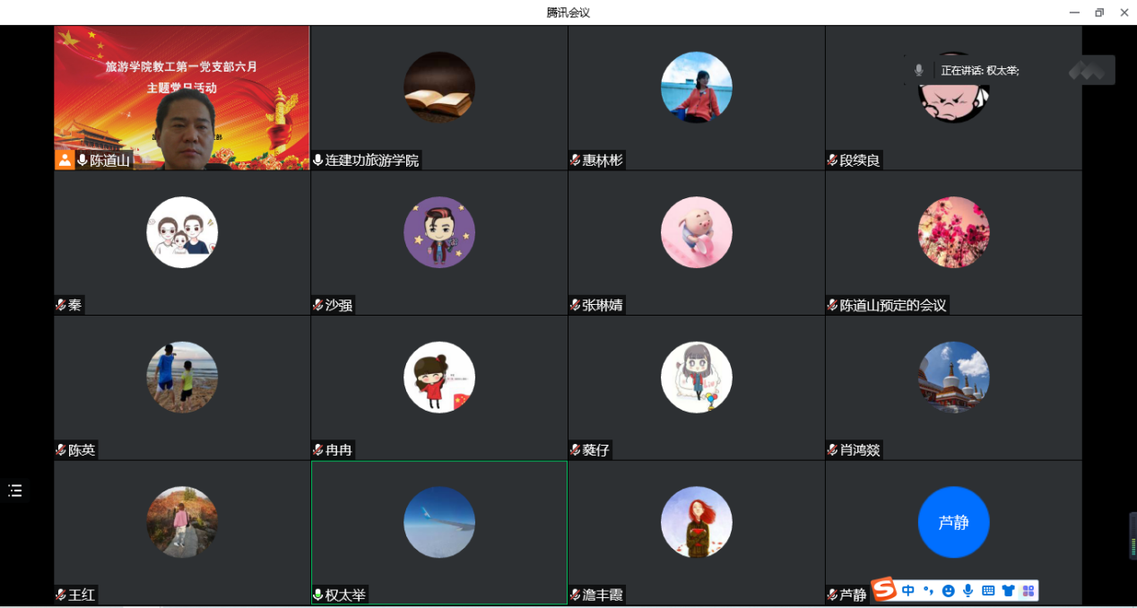 6月16下午,旅游公司教工第一党支部利用腾讯会议开展了主题党日线上学习研讨活动,会议由支部书记陈道山主持支部全体党员参加