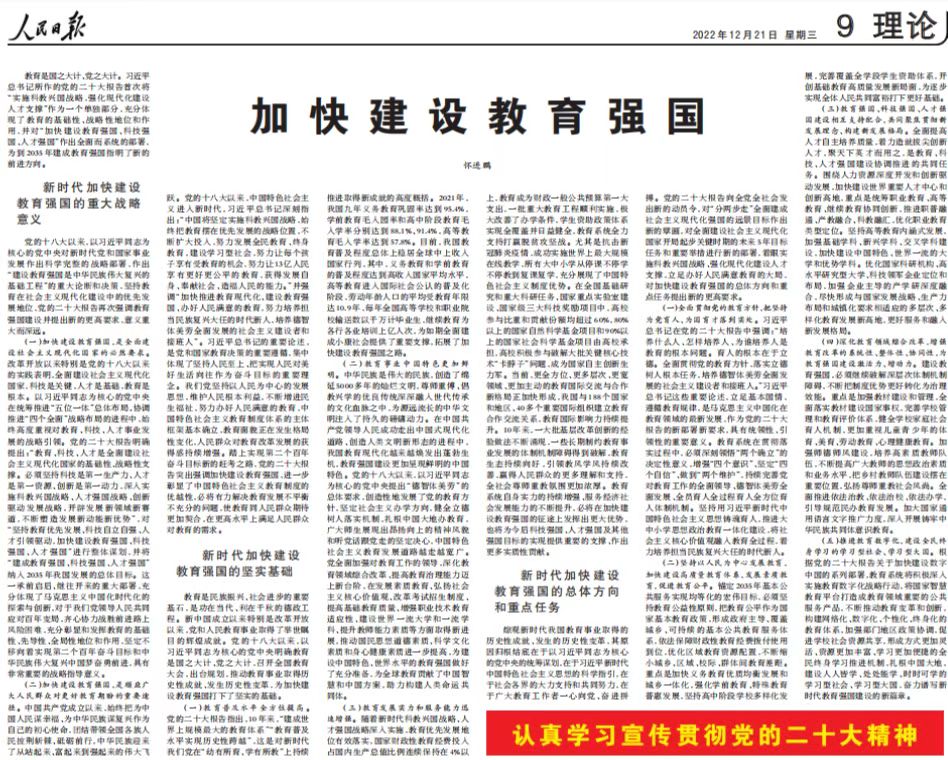 会上,支部党员连建功、肖鸿燚、惠林彬、陈道山四位同志结合自己的学习体会和实际工作,领学了习近平总书记《在党的十九届七中全会第二次全体会议上的讲话》,党的二十大报告关于“实施科教兴国战略、强化现代化建设人才支撑”的重大战略部署,重温中央八项规定、推进作风建设常态化长效化,教育部长怀进鹏《加快建设教育强国》等学习内容。支部党员结合学习内容展开交流讨论,纷纷表示,作为高公司党员教师,必须深刻学习领会、宣传贯彻党的二十大精神及其在“科教兴国、人才强国”方面的重大战略部署,结合公司实际情况,必须将党的教育方针贯彻在具体的教学工作中,脚踏实地、兢兢业业,办好人民满意的教育,培养更多社会主义建设者和接班人。