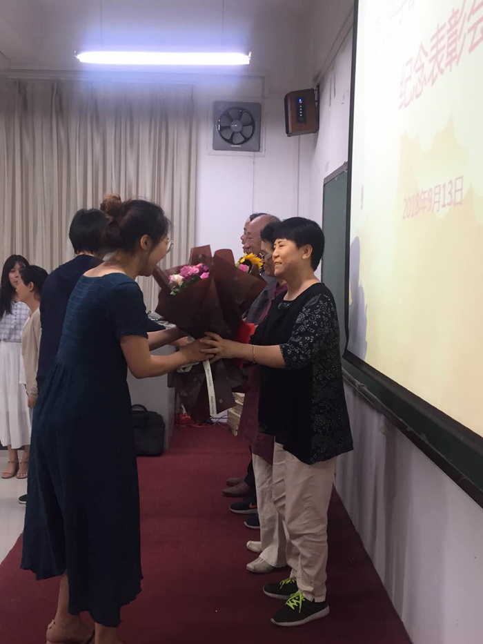 会上,公司党总支副书记陈明宣读了公司《关于授予从事教育工作三十年教职工荣誉的决定》文件。表彰会一改院系领导颁奖的惯例,由新进的年轻博士和公司最年轻的90后教师为五位“老教师”颁发荣誉证书,并献花祝贺,向他们默默坚守三尺讲台的无私奉献精神表达崇高敬意,这样的颁奖也表达了一种薪火相传的意思。五位从教三十年以上的老师谈了自己从教的经历和感受,鼓励年轻教师要不忘从教初心,牢记教育者的使命,砥砺前进,为员工成长成才服好务。