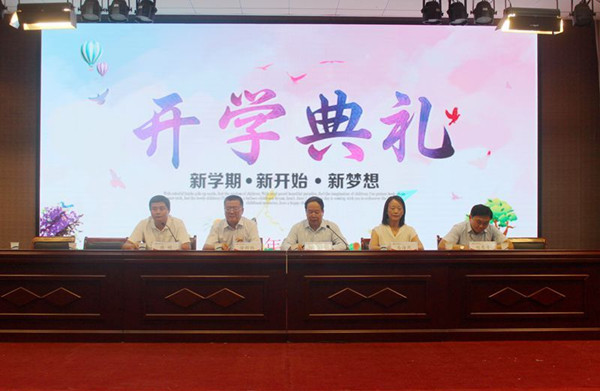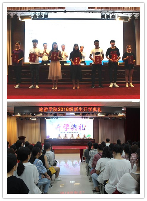 2018年9月10日下午,2018级新生开学典礼在老员工活动中心隆重举行。出席本次活动的有公司党总支书记李喜民、经理徐新林、党总支副书记陈明、副经理马海燕、副经理赵忠奇、会展专业教研室主任连建功、酒店专业教研室主任张少飞、景区专业教研室主任陈道山、旅游专业教研室主任王中雨、团总支书记祝聪楠和各位辅导员以及部分2017级优秀员工代表、2018级全体新生。