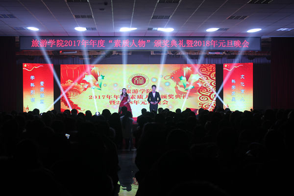2017年12月20日晚,旅游管理系在老员工活动中心举行了2017年度“素质人物”颁奖典礼暨2018年元旦晚会活动。系党总支书记李喜民、系主任徐新林、系党总支副书记陈明、系副主任赵忠奇、系办公室主任魏九峰、系教学秘书陈英、酒店管理专业教研室主任张少飞、会展经济与管理专业教研室主任连建功、系团总支书记祝聪楠以及各位辅导员老师参加了活动。