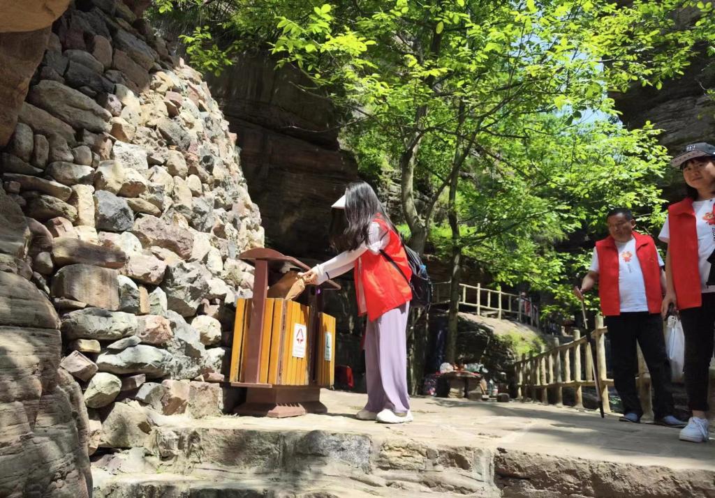志愿者们身穿红马甲,为景区的游客提供了义务讲解服务,进行了文明告知、提醒、规劝和引导等内容。积极协助景区工作人员维持秩序,并对景区内的垃圾杂物进行清理。志愿者们倡导游客养成爱护环境、文明旅游、安全出行的良好习惯,进一步增强了文明旅游的意识。这一系列举措为塑造“行走河南读懂中国”品牌,营造文明、和谐的旅游环境发挥了积极作用。