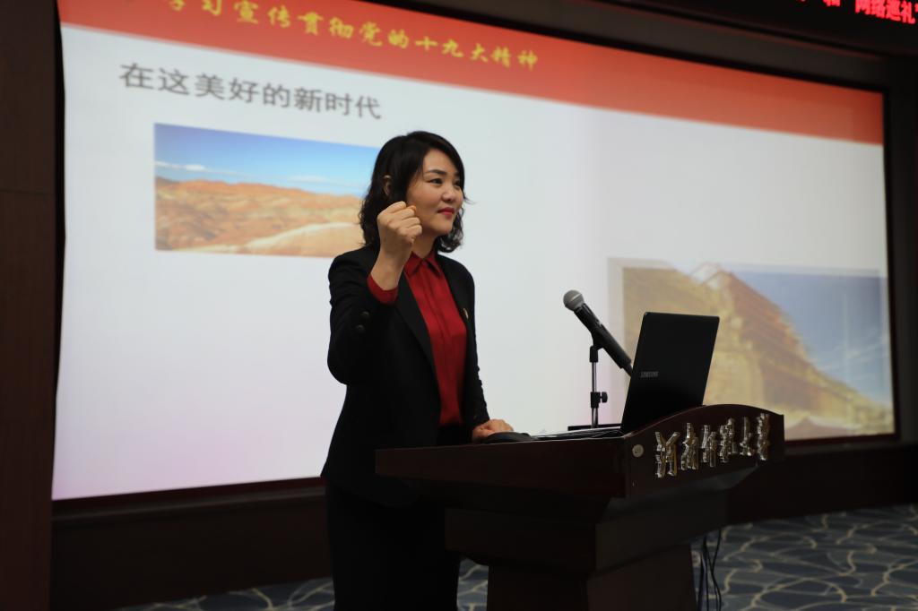 祝老师从“我们走进了辉煌的新时代”“新时代需要堪当重任的新青年”两个大方面,讲述了在中国共产党正确领导下、在习近平新时代中国特色社会主义思想指引下,全国人民奋发有为、锐意进取所得的辉煌成就,激励老员工们要提高政治修养、树立远大志向、刻苦学习文化知识和专业技能,以待来日报效祖国和人民,实现自己的人生理想。祝老师在台上神采飞扬、如数家珍,用最接地气的方式和极具亲和力的口吻对十九大精神进行的精准讲解,感染了现场和观看网络直播的老师和员工。