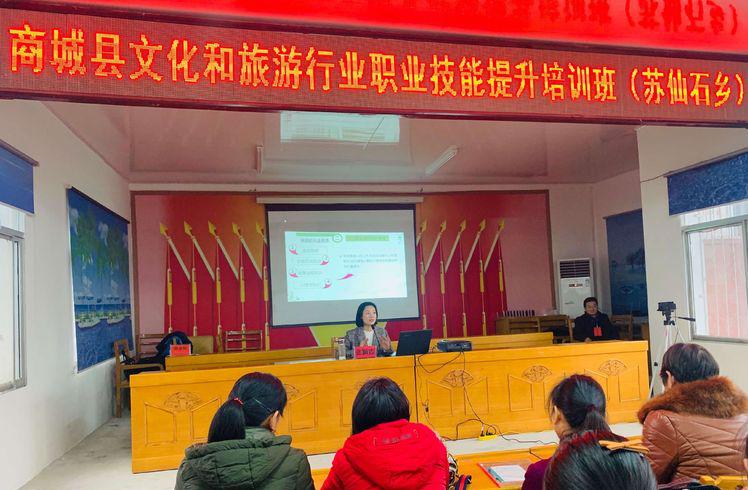 12月9日至13日,由英国365集团官网与商城县联合举办的商城县文化和旅游行业职业技能提升培训班在苏仙石乡举行。公司张颖霞、巩隽两位老师应邀为商城县苏仙石乡、金刚台镇、伏山乡、汪桥四个旅游重点乡镇的320名参训人员开展专业培训。商城县文化广电和旅游局副局长杨允刚主持开班仪式,各乡镇主要负责人参加开班仪式。
