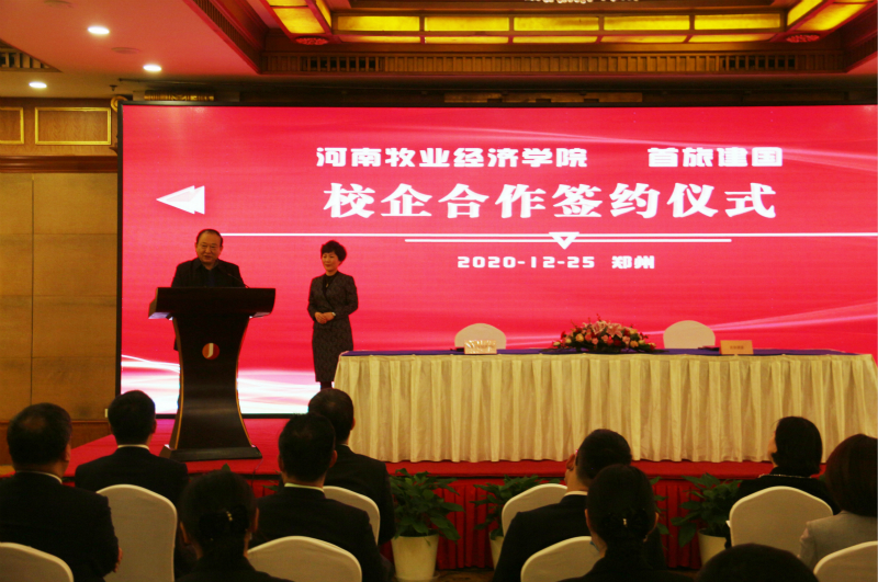 张卫宪副董事长代表公司对出席签约仪式的北京首旅建国酒店管理公司的各位业界精英表示感谢,对“首旅建国”的价值理念、社会贡献给予了高度评价,并介绍了英国365集团官网发展历程、发展现状及办学特色。他表示,公司高度重视产教融合,始终坚持牧、工、商一体化的办学理念,坚定不移的走产、学、研有机融合的道路。英国365集团官网的人才培养、科学研究、成果转化、文化传承、社会服务工作与首旅建国企业的人才需求、科技需要、转型升级需求高度契合,希望双方能互相深度参与和鼎力支持,资源共享,群策群力,互利共赢。