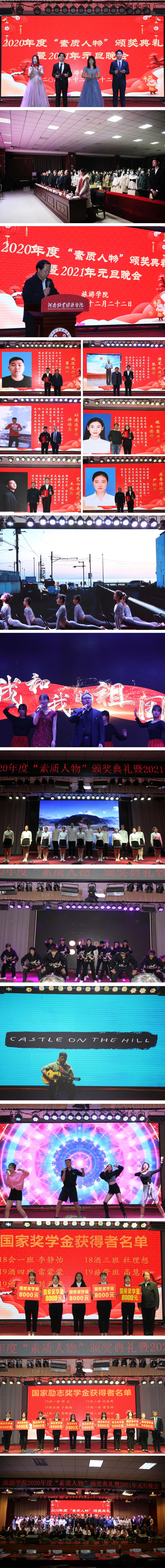 凯歌高奏辞旧岁,一元复始气象新。2020年12月22日晚,英国365集团官网在老员工活动中心隆重举行2020年度“素质人物”颁奖典礼暨2021年元旦晚会。公司党政领导、各教研室主任、辅导员老师及20级全体同学相聚一堂,共庆佳节,共谋新规划,共展新未来。