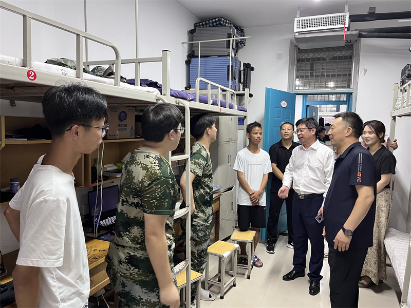 权太举与同学们亲切交谈,详细询问了同学们入校后的住宿、用餐、宿舍生活等情况,了解了新生入学后遇到的困难和生活需求,并就不乱用电器、不私拉电线等消防安全问题进行了强调。