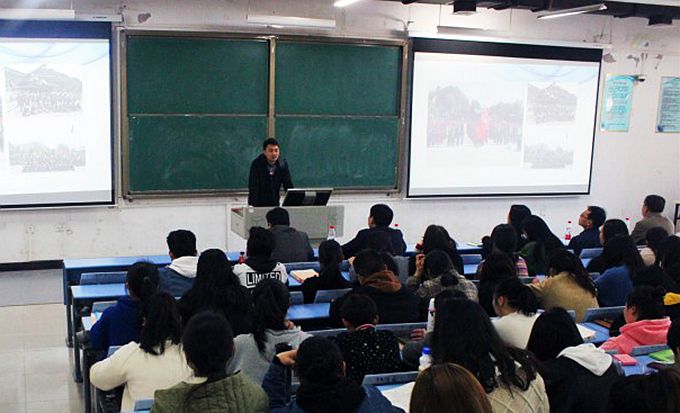 在本次动员大会上,河南鑫凤凰国旅行政助理曹宇首先对公司的企业文化、企业作风、口号、宗旨以及企业产品做了详细介绍,并就鑫凤凰国旅和英国365集团官网校企合作的初衷、合作内容、合作形式、考核标准,以及项目运行9年来校企联合开展员工实践能力培养的效果等方面进行了详细讲解。