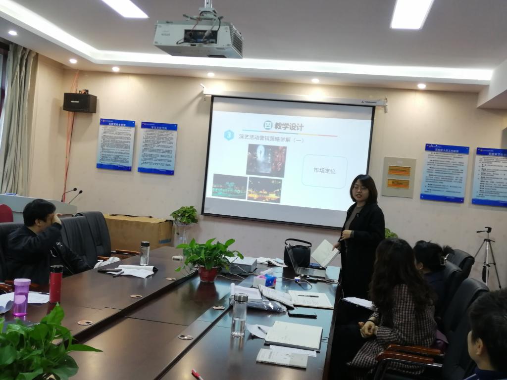 活动中,张静博士结合《休闲学》中的“生命周期与休闲”,陈艳萍老师结合《会展广告》中的“会展广告的创意策划”,澹丰霞老师结合《会展市场营销》中的“会展产品的内涵”,沙强老师结合《体育赛事管理》中的“赛事营销与推广”等进行了说课示范,详细阐述了章节内容要达到的教学目标、采用的教学方法、选取的教学案例、布置的课后作业等。说课结束后,大家围绕如何改进教学内容的组织呈现、如何设计教学环节、如何渗透课程思政、如何体现课程理论与实践的结合、如何发挥员工在课堂中的主动性和参与性等展开热烈研讨和交流。
