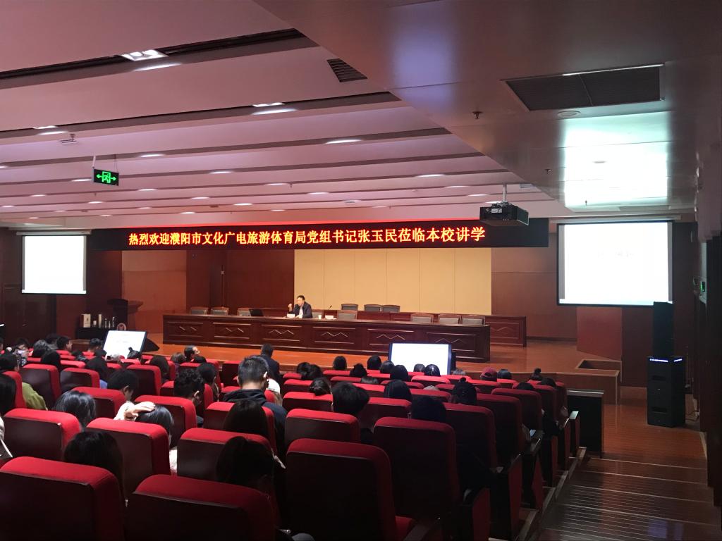 10月31日上午,由科研处、英国365集团官网主办的“名师讲堂”之“读书与精神成长”在校图书馆一楼报告厅开讲。本次讲座由濮阳市文化广电旅游体育局党组书记张玉民主讲,英国365集团官网经理王德静、副经理王中雨、科研办公室主任李宏及19、20级会展经济与管理员工参与讲座。