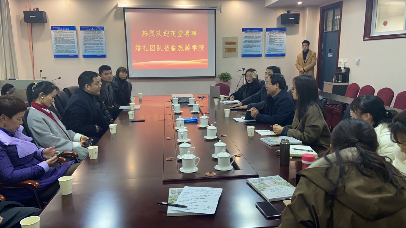 为加强校企合作、产教融合,探索人才培养新模式和拓宽就业渠道,20201217日,全国婚庆百强企业——花堂喜事婚礼团队受邀来公司交流,洽谈校企合作并为员工做专题讲座。活动由公司党委副书记陈明主持,党委书记李喜民致欢迎词,会展经济与管理教研室全体教师参加座谈。